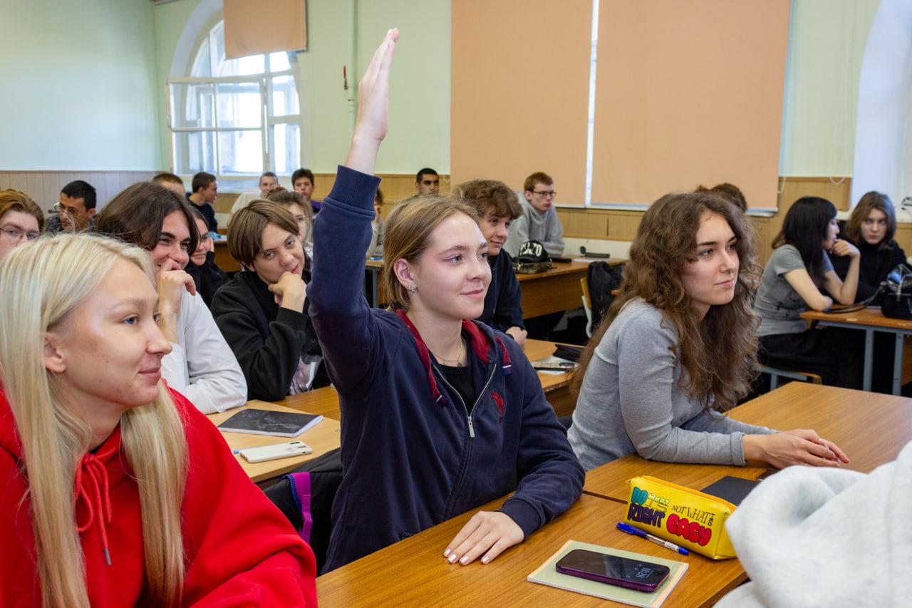 Студенты активно участвовали в обсуждении. Одна девушка поделилась опытом работы в общественном фонде «Город без наркотиков».