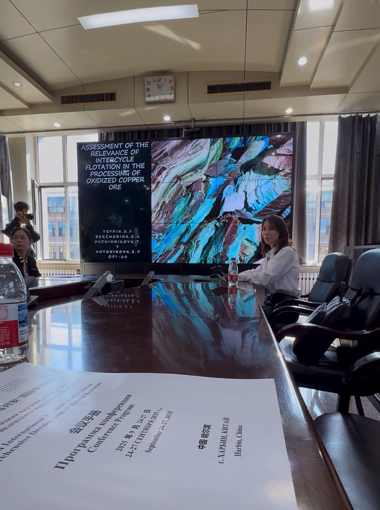 В рамках секции, посвященной инновационным методам обогащения полезных ископаемых, студентка представила доклад на тему «Оценка целесообразности проведения межцикловой флотации при переработке окисленных медных руд». Исследование, выполненное под руководством доктора технических наук Е. Ф. Цыпина, а также кандидатов технических наук Е. А. Бекчуриной и Т. Ю. Овчинниковой, вызвало активный профессиональный интерес у международной аудитории.