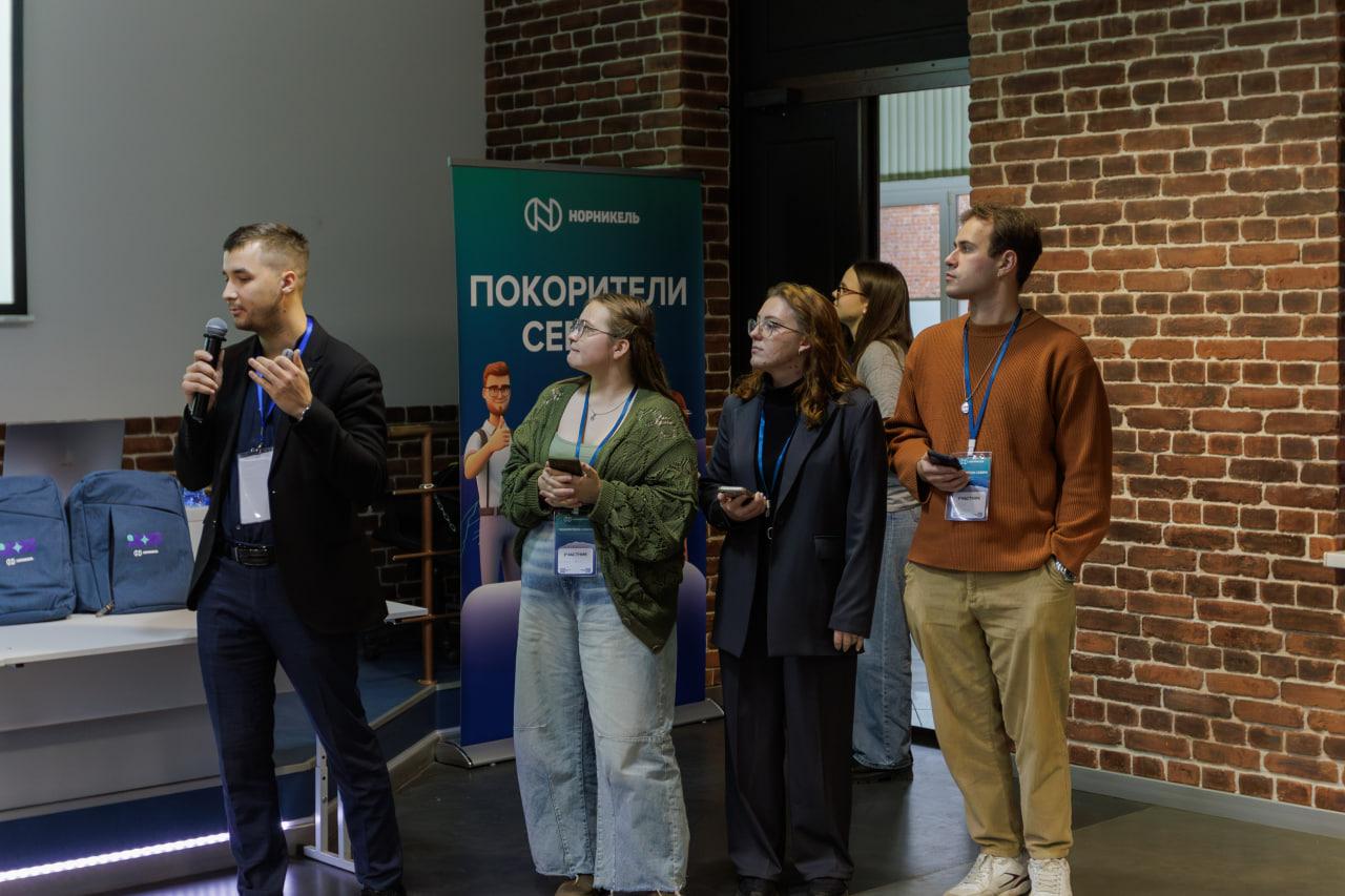 Перед стартом кейс-заданий амбассадор компании Илья Полтавский представил участникам стратегические направления деятельности и возможности практики и трудоустройства в «Норникеле» — крупнейшем промышленном предприятии Арктической зоны.