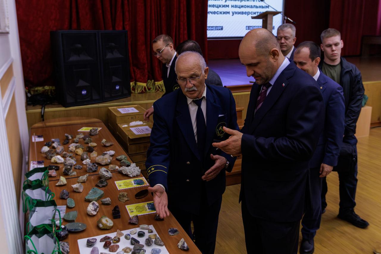 Первой инициативой в рамках партнерства стал дар уральских геологов – в Донецк отправятся свыше 30 коллекций горных пород и минералов. Уникальные образцы были собраны студентами Горного и сотрудниками Центра камня при УГГУ. Коллекции презентовал директор Центра Фират Нурмухаметов. По его словам, они станут ценным наглядным пособием для подготовки не только геологов и минералогов, но и будущих мастеров-камнерезов.
