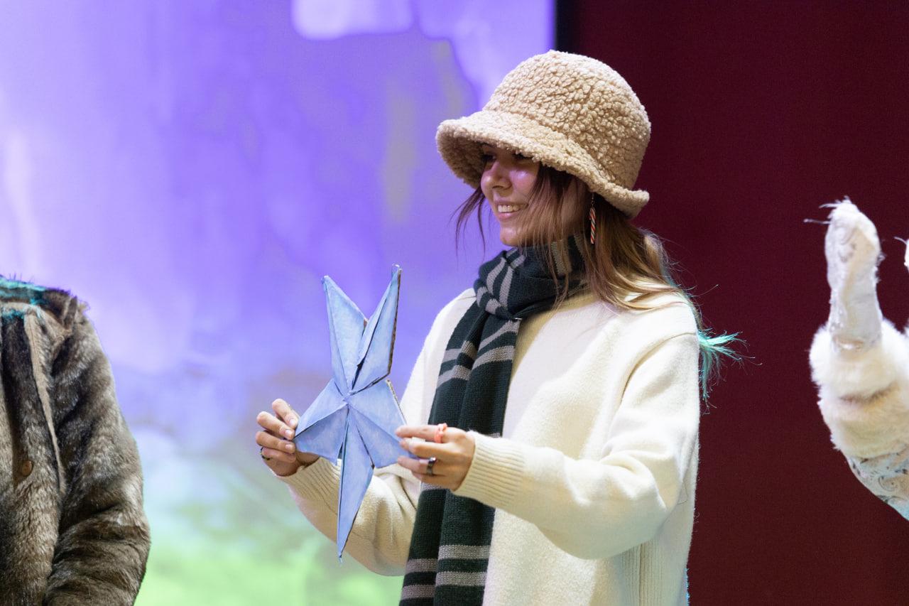 Вместе с героями юные гости путешествовали по зимней тайге, знакомились со сказочными персонажами и встречали Новый год в уютном зимовье геологов вместе с Дедом Морозом и Снегурочкой.